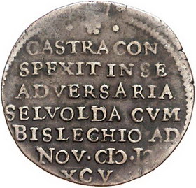 Los-Nummer: Auktion 51 - 160 Altdeutsche Münzen und Medaillen Bislich (bei Xanten) Cu Jeton 1595. Auf die Vertreibung der Spanier und die Einnahme der Stadt. Soldaten stürmen Festungsturm / Schrift. Dugniolle 3374, v. Loon I. 456.1. 28,5 mm. Schön - sehr schön Schätzpreis: 100,- Zuschlag: 90,- |