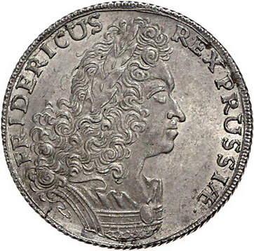 Los-Nummer: Auktion 51 - 392 Altdeutsche Münzen und Medaillen Brandenburg-Preußen Friedrich I. 1701-1713, 2/3 Taler 1706 HFH, Magdeburg. Drapiertes und geharnischtes Brustbild nach rechts / Gekröntes Wappen. v. Schrötter 126, Davenport 292. Prachtexemplar. Perfekt ausgeprägt. Fast Stempelglanz Schätzpreis: 1500,- Zuschlag: unverkauft |