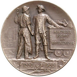 Los-Nummer: Auktion 51 - 583 Altdeutsche Münzen und Medaillen Brandenburg-Preußen Wilhelm II. 1888-1918, Bronzemedaille 1902, von Lehnert. 700 Jahre Mansfelder Bergbau. Brustbild Wilhelms II. nach rechts / Bergmann und Hüttenarbeiter reichen sich die Hand, daneben Förderwagen, im Hintergrund Zechenanlage. Dazu die gleiche Bronzemedaille in kleinerem Format. Slg. Marienburg - , Müseler 49.2.18 a, 49.2.20, Slg. Vogelsang 203, 204. 70,5 und 33,3 mm. 2 Stück. Originaletui. Vorzüglich + Schätzpreis: 175,- Zuschlag: 215,- |