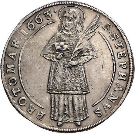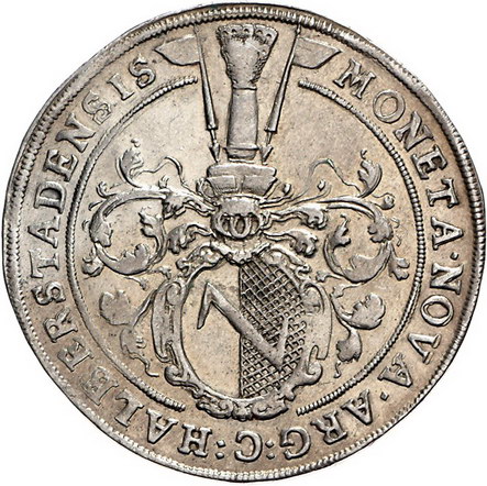 Los-Nummer: Auktion 51 - 856 Altdeutsche Münzen und Medaillen Halberstadt, Stadt Taler 1663. Der nach links gewandte St. Stephan, in der Rechten Buch mit drei Steinen, in der Linken Palmzweig / Behelmtes und verziertes Stadtwappen. Besser/Brämer/Bürger 50.16, Davenport 5354, Slg. Schwanecke 264. Kl. Kratzer, sehr schön - vorzüglich Schätzpreis: 2500,- Zuschlag: unverkauft |