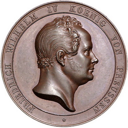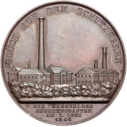 Los-Nummer: Auktion 51 - 559 Altdeutsche Münzen und Medaillen Brandenburg-Preußen Friedrich Wilhelm IV. 1840-1861, Bronzemedaille 1846, von Pfeuffer. Auf die Huldigung der Mansfelder Gewerkschaften. Kopf nach rechts / Ansicht der Betriebsgebäude. Slg. Henckel 4719, Slg. Marienburg 5063 (Ag) , Sommer P 81, Müseler 49.1/43 a. 42,5 mm. Vorzüglich Schätzpreis: 100,- Zuschlag: 150,- |