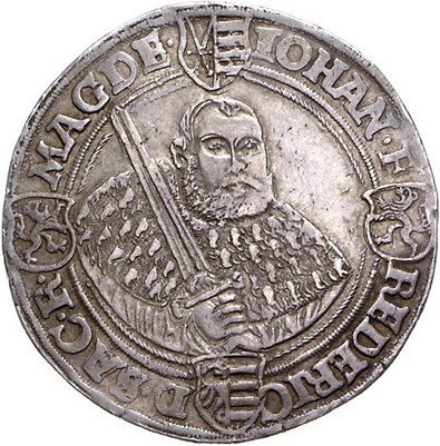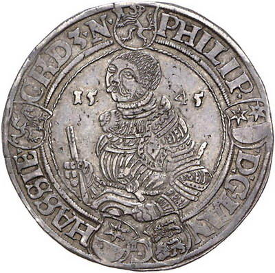 Los-Nummer: Auktion 51 - 1534 Altdeutsche Münzen und Medaillen Sachsen-Kurfürstentum Johann Friedrich und Philipp von Hessen 1542-1547, Schmalkaldischer Bundestaler 1545, Goslar. Keilitz 228, Schnee 131, Davenport 9740, Slg. Merseburger 537, Schulten 1257. Schöne Patina. Sehr schön - vorzüglich Schätzpreis: 1000,- Zuschlag: 800,- |