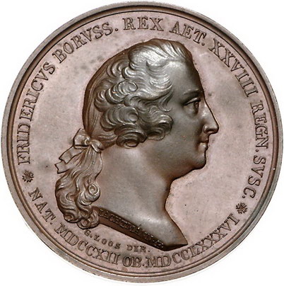 Los-Nummer: Auktion 51 - 470 Altdeutsche Münzen und Medaillen Brandenburg-Preußen Medaillen Friedrichs II. Bronzemedaille o.J. (1836), von Jachtmann. Auf seinen 50. Todestag. Kopf nach rechts / Adler mit Schriftrolle. Slg. Henckel 1835, Slg. Marienburg 3210 , Wurzbach 2838. 41,1 mm. Vorzüglich + Schätzpreis: 50,- Zuschlag: unverkauft |