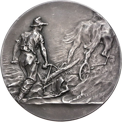 Los-Nummer: Auktion 51 - 1615 Altdeutsche Münzen und Medaillen Sachsen-Dresden, Stadt Medaillen von Friedrich Wilhelm Hörnlein, Silbermedaille o.J. Pflügender Bauer nach rechts / Vier Zeilen Schrift über gekröntem sächsischen Wappen in Kranz aus Früchten und Ähren. Arnold 323. 51,5 mm, 46,16 g. Mattiert. Vorzüglich Schätzpreis: 200,- Zuschlag: unverkauft |