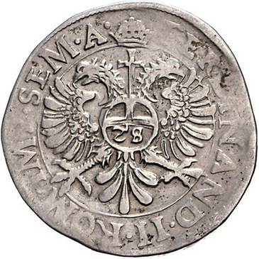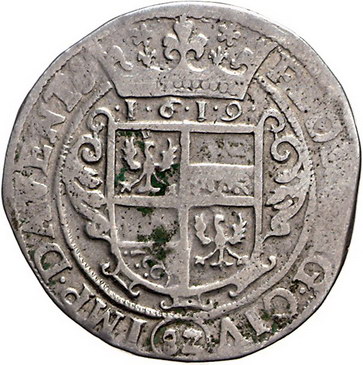 Los-Nummer: Auktion 51 - 3474 Ausländische Münzen und Medaillen Niederlande-Deventer, Stadt Gulden zu 28 Stüber 1619 mit Namen Ferdinands II. Mit Schreibfehler der Wertzahl '82' anstatt '28'. Delmonte 1107, Verkade 153/4 var, Purmer De 32.2 , CNM 2.07.36. Sehr selten. Sehr schön Schätzpreis: 350,- Zuschlag: unverkauft |