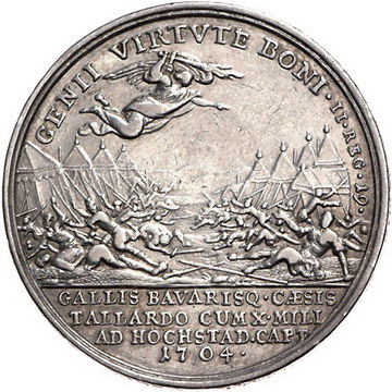 Los-Nummer: Auktion 51 - 2128 Haus Habsburg Haus Habsburg Leopold I. 1657-1705, Medaille 1704, von P.H. Müller und Kleinert. Auf die Schlacht bei Höchstädt/Donau gegen die bayerisch-französische Armee. Brustbild nach rechts / Engel über dem Lager Sanheribs mit am Boden liegenden Kriegern. Slg. Montenuovo 1171 , Slg. Julius 659, Forster 722, Francs 258. 37 mm, 20,22 g. Winz. Randfehler und Kratzer, sehr schön Schätzpreis: 125,- Zuschlag: 160,- |