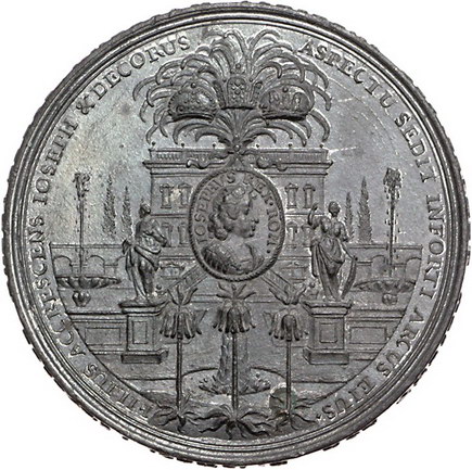 Los-Nummer: Auktion 51 - 2136 Haus Habsburg Haus Habsburg Josef I. 1705-1711, Medaille 1690. Auf seine Krönung in Augsburg. Medaillon mit dem Bildnis des Kaisers an Palme, im Hintergrund Gartenansicht und Schloss / Ceres und Korngarben beugen sich vor dem thronenden König. Slg. Montenuovo 1208 , Slg. Julius 538. 44,5 mm. Kupferstift. Vorzüglich Schätzpreis: 75,- Zuschlag: 150,- |