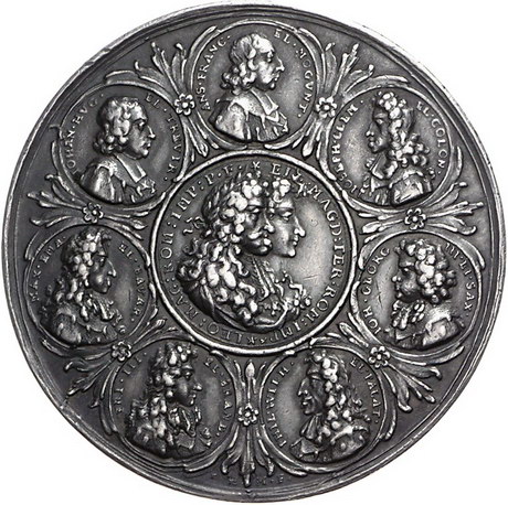 Los-Nummer: Auktion 51 - 2138 Haus Habsburg Haus Habsburg Josef I. 1705-1711, Medaille 1690, von P.H. Müller. Auf seine Krönung in Augsburg. Brustbilder des Kaiserpaares umgeben von sieben Medaillonbildern der Kurfürsten / Granatbaum mit dem Brustbild des jungen Königs, darunter hält sitzende Germania Schild mit den Wappen der Kurfürsten, daneben Ungaria mit ungarischem Schild. Slg. Montenuovo 1210 , Slg. Julius 532, Forster 828. 48 mm, 30,82 g. Dunkel patiniert, kl. Randfehler, fast vorzüglich Schätzpreis: 400,- Zuschlag: 500,- |