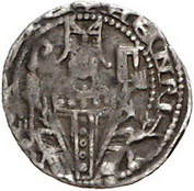 Los-Nummer: Auktion 51 - 49 Altdeutsche Münzen und Medaillen Attendorn, erzbischöflich kölnische Münzstätte Heinrich I. von Molenark 1225-1238, Pfennig auf Soester Schlag. 1,26 g. +HENRI-//EPC Sitzender Erzbischof mit Krummstab und Buch / SOSATCIVITAS Dreitürmiges Gebäude in Mauerring, im Tor des mittleren Turmes stehender Halbmond. Hävernick -, Berghaus - , Fd. Hesseln 5 h. Exemplar der Sammlung Dr. Bernhard Schulte. Von größter Seltenheit. Fast sehr schön Schätzpreis: 750,- Zuschlag: 825,- |