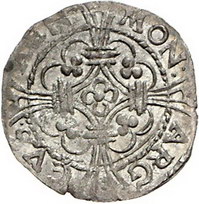 Los-Nummer: Auktion 51 - 46 Altdeutsche Münzen und Medaillen Anholt, Herrschaft Leopold Philipp Carl von Salm 1637-1663, Stüber o.J. Gekröntes vierfeldiges Wappen zwischen I - S / Blumenkreuz, in der Mitte vierblättrige Rosette. Joseph 225. Sehr selten, besonders in dieser Erhaltung. Vorzüglich - Stempelglanz Schätzpreis: 400,- Zuschlag: 320,- |