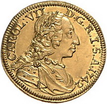 Los-Nummer: Auktion 51 - 860 Altdeutsche Münzen und Medaillen Hall in Schwaben Dukat 1742, Nürnberg. Mit Namen und Titel Karls VII. Raff 42, Friedberg 1080. GOLD. Fast Stempelglanz Schätzpreis: 6500,- Zuschlag: unverkauft |