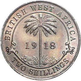 Los-Nummer: Auktion 51 - 2920 Ausländische Münzen und Medaillen Britisch Westafrika George VI. 1910-1936, 2 Shilling 1918. K.M. 13. Vorzüglich - Stempelglanz Schätzpreis: 100,- Zuschlag: 200,- |