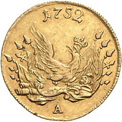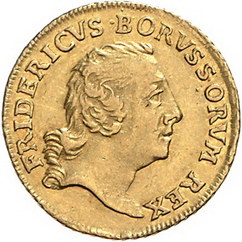 Los-Nummer: Auktion 51 - 449 Altdeutsche Münzen und Medaillen Brandenburg-Preußen Friedrich II. 1740-1786, Friedrichs d'or 1752 A, Berlin. Olding 401 b, v. Schrötter 102, Friedberg 2392. GOLD. Selten. Sehr schön - vorzüglich Schätzpreis: 3000,- Zuschlag: 2900,- |