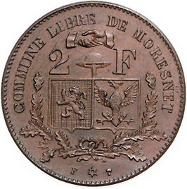 Los-Nummer: Auktion 51 - 556 Altdeutsche Münzen und Medaillen Brandenburg-Preußen Friedrich Wilhelm IV. 1840-1861, 2 Francs 1848. Für Moresnet. Zwitter-Prägung. Abschlag der beiden Rückseitenstempel in Bronze. Dazu ein einseitiger Abschlag des Vorderseitenstempels in Bronze. Jaeger 251/252. 2 Stück. 27,5 mm. Vorzüglich Schätzpreis: 300,- Zuschlag: unverkauft |