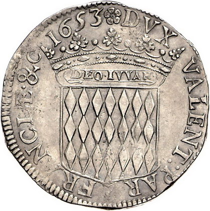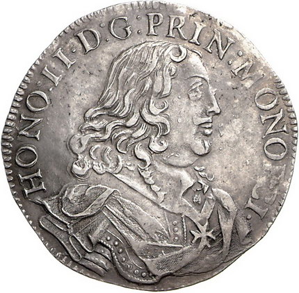 Los-Nummer: Auktion 51 - 3436 Ausländische Münzen und Medaillen Monaco Honoré II. 1604-1662, Scudo 1653. Davenport 4306, Varesi 435/3. Fast vorzüglich Schätzpreis: 3500,- Zuschlag: 3600,- |