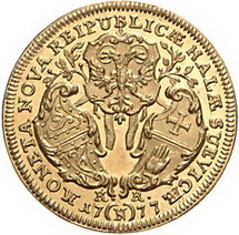 Los-Nummer: Auktion 51 - 863 Altdeutsche Münzen und Medaillen Hall in Schwaben Dukat 1777, Nürnberg. Mit Namen und Titel Josephs II. Raff 51, Friedberg 1083. GOLD. Stempelglanz Schätzpreis: 2000,- Zuschlag: 1900,- |