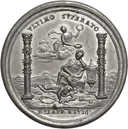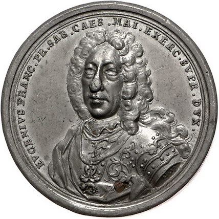 Los-Nummer: Auktion 51 - 2168 Haus Habsburg Haus Habsburg Karl VI. 1711-1740, Zinnmedaille 1736, von Werner. Auf den Tod des Prinzen Eugen von Savoyen. Brustbild halblinks / Zwischen zwei Säulen sitzt Prinz Eugen an eine Urne gelehnt, den rechten Fuß auf einem besiegten Feind, oben Viktoria. Slg. Montenuovo 1622 (Ag) , Slg. Julius 1129. 44 mm. Mit Kupferstift. Fast vorzüglich Schätzpreis: 50,- Zuschlag: 110,- |