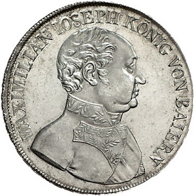 Los-Nummer: Auktion 51 - 120 Altdeutsche Münzen und Medaillen Bayern Maximilian I. Joseph 1806-1825, Taler 1825. Jaeger 16, Thun 46, AKS 49, Kahnt 70. Vorzüglich - Stempelglanz Schätzpreis: 600,- Zuschlag: 480,- |