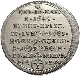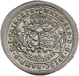Los-Nummer: Auktion 51 - 89 Altdeutsche Münzen und Medaillen Bamberg, Bistum Marquard Sebastian Schenk von Stauffenberg 1683-1693, Groschen 1693. Auf seinen Tod. Krug 355, Heller 268. Prachtexemplar. Stempelglanz Schätzpreis: 350,- Zuschlag: unverkauft |