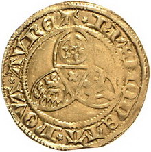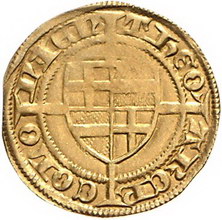 Los-Nummer: Auktion 51 - 974 Altdeutsche Münzen und Medaillen Köln, Erzbistum Dietrich von Mörs 1414-1463, Goldgulden, Riel (1441). Noss 370, Felke 1290, Friedberg 797. GOLD. Sehr schön Schätzpreis: 350,- Zuschlag: 280,- |