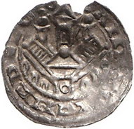 Los-Nummer: Auktion 51 - 833 Altdeutsche Münzen und Medaillen Gittelde, erzbischöflich magdeburgische Mzst. Dietrich II. von Katlenburg, Vogt 1056-1106, Pfennig. 0,96 g. TH///RICVS Brustbild von vorn mit Schwert und erhobener Linken / AHRT/ICHEDG Dreitürmiges Torgebäude, im Portal ein Ringel. Dannenberg 690, Hävernick zu 396-397. Randausbruch, gewellt, sehr schön Schätzpreis: 75,- Zuschlag: 60,- |