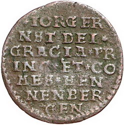 Los-Nummer: Auktion 51 - 907 Altdeutsche Münzen und Medaillen Henneberg, Grafschaft Georg Ernst 1559-1583, Cu Rechenpfennig o.J. Wappen / Schrift. Slg. Merseburger 4319 , Heuss Abb. 123. Fast sehr schön Schätzpreis: 125,- Zuschlag: 110,- |