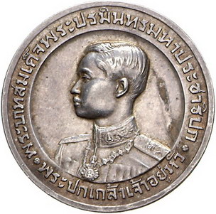 Los-Nummer: Auktion 51 - 4041 Ausländische Münzen und Medaillen Thailand (Siam) Rama VI. (Phra Maha Vajiravudh) 1910-1925, Medaille o.J. Brustbild in Uniform nach links / Schrift. 31,5 mm, 16,75 g. Schöne Patina. Winz. Henkelspur, vorzüglich Schätzpreis: 100,- Zuschlag: 80,- |