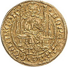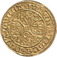 Los-Nummer: Auktion 51 - 975 Altdeutsche Münzen und Medaillen Köln, Erzbistum Ruprecht Pfalzgraf bei Rhein 1463-1480, Goldgulden o.J., Riel. Thronender Christus / Vier Wappen ins Kreuz gestellt. Noss 426, Felke 1457, Friedberg 800. GOLD. Doppelschlag, sehr schön Schätzpreis: 300,- Zuschlag: 330,- |