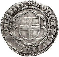 Los-Nummer: Auktion 51 - 985 Altdeutsche Münzen und Medaillen Konstanz, Stadt Schilling nach dem Vertrag von 1417. Thronender Hl. Konrad mit Krummstab und segnender Rechten / Stadtschild in Sechspass. Nau 11. Prägeschwäche, fast sehr schön Schätzpreis: 175,- Zuschlag: 240,- |