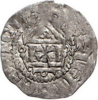 Los-Nummer: Auktion 51 - 1033 Altdeutsche Münzen und Medaillen Mainz, königliche Münzstätte Heinrich II. 1002-1024, Pfennig. 1,11 g. Gekrönter, bärtiger Kopf von vorn / Kirche mit Christogramm. Dannenberg 793, Slg. Walther -, Kluge 139. Schön Schätzpreis: 125,- Zuschlag: 160,- |
