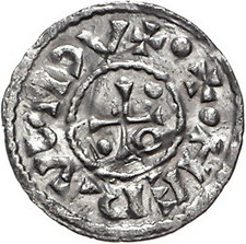 Los-Nummer: Auktion 51 - 1457 Altdeutsche Münzen und Medaillen Regensburg-herzogliche Münzstätte Heinrich II. der Friedfertige, zweite Regierung 985-995, Pfennig. 1,60 g. Münzmeister ELLN. Letternkirche / Kreuz. Hahn 22 c 2, Dannenberg 1069 var. Winz. Schrötlingsrisse, sehr schön - vorzüglich Schätzpreis: 100,- Zuschlag: 130,- |