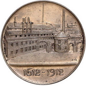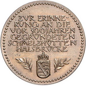 Los-Nummer: Auktion 51 - 1605 Altdeutsche Münzen und Medaillen Sachsen-Dresden, Stadt Medaillen von Friedrich Wilhelm Hörnlein, Bronzemedaille 1912. Auf das 300jährige Jubiläum der Schmelzhütten Halsbrücke. Ansicht der Hüttengebäude / Schrift über sächsischem Wappen. Arnold 91, Müseler 56.2.3/46 a. 30,5 mm. Vorzüglich + Schätzpreis: 50,- Zuschlag: 80,- |