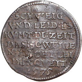 Los-Nummer: Auktion 51 - 1638 Altdeutsche Münzen und Medaillen Sachsen-Coburg-Eisenach (Alt-Gotha) Johann Casimir und Johann Ernst 1572-1633, Cu Rechenpfennig 1575, Saalfeld, des Jacob Nebelthau. Zwei Männer neben Wappen / Schrift. Grasser 246, Kozinowski/Otto/Ruß 1241.1 , Neumann 32704. Gestopftes Loch? leicht gewellt, sehr schön Schätzpreis: 45,- Zuschlag: unverkauft |