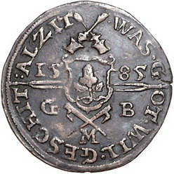 Los-Nummer: Auktion 51 - 1641 Altdeutsche Münzen und Medaillen Sachsen-Coburg-Eisenach (Alt-Gotha) Johann Casimir und Johann Ernst 1572-1633, Cu Rechenpfennig 1579/1585 des Gregor Bechstedt in Saalfeld. St. Georg ersticht Drachen / Wappen mit Eichel, Zainhaken und Prägestöcken zwischen 15 - 85 und G - M - B. Grasser 248 b, Slg. Merseburger -, Kozinowski/Otto/Ruß 1251. Sehr schön + Schätzpreis: 125,- Zuschlag: unverkauft |