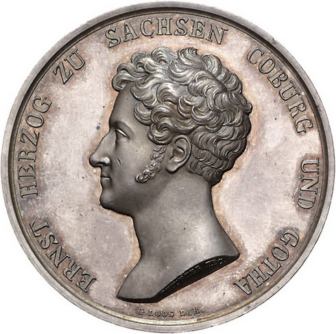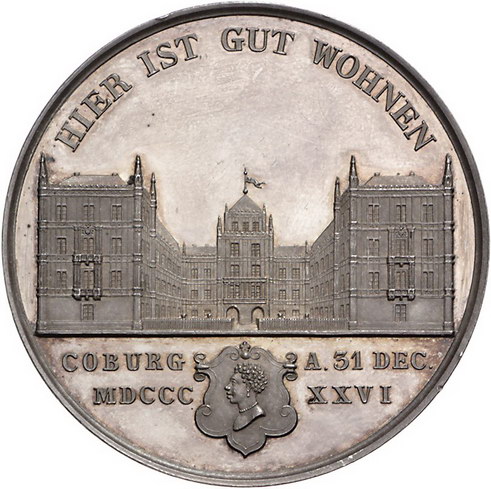 Los-Nummer: Auktion 51 - 1660 Altdeutsche Münzen und Medaillen Sachsen-Coburg-Gotha Ernst I. 1826-1844, Medaille 1826, von Pfeuffer. Auf seinen Einzug in das neu errichtete Schloss in Coburg / Büste nach links / Ansicht des Schlosses Ehrenburg. Slg. Merseburger 3286 (Bronze) , Sommer P 13. 50 mm, 55,80 g. Winz. Kratzer, winz. Randfehler, vorzüglich - Stempelglanz Schätzpreis: 225,- Zuschlag: 250,- |