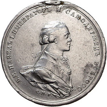 Los-Nummer: Auktion 51 - 3751 Ausländische Münzen und Medaillen Russland Paul I. 1796-1801, Rubelförmige Medaille o.J. (1797), von C. Meissner. Auf die Krönung. Brustbild nach rechts / Kreuz. Diakov 243.9 , Smirnov 328 c, Reichel 2963. 39 mm, 20,22 g. Henkelspur, sehr schön Schätzpreis: 150,- Zuschlag: 170,- |