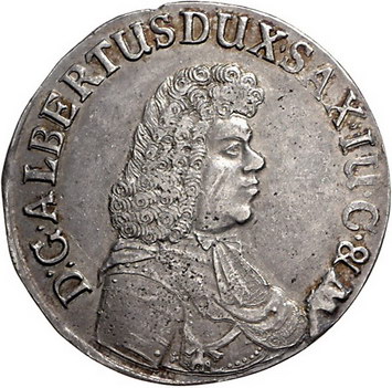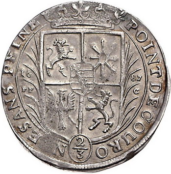 Los-Nummer: Auktion 51 - 1676 Altdeutsche Münzen und Medaillen Sachsen-Coburg Albrecht III. 1680-1699, 2/3 Taler 1687. Geharnischtes Brustbild rechts / Gekröntes fünffeldiges Wappen zwischen Palmzweigen, Jahreszahl und Münzmeisterinitialen PF - C. Grasser 374, Davenport 836, Kozinowski/Otto/Ruß 535.1. Sehr schön + Schätzpreis: 250,- Zuschlag: 200,- |