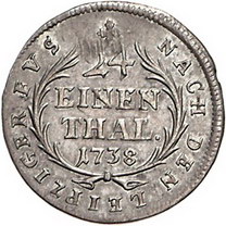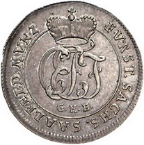 Los-Nummer: Auktion 51 - 1690 Altdeutsche Münzen und Medaillen Sachsen-Coburg-Saalfeld Christian Ernst und Franz Josias 1729-1745, Groschen 1738 GHE. Fürstenhut über Monogramm / Wert zwischen Palmzweigen. Grasser 432, Slg. Merseburger 3651, Kozinowski/Otto/Ruß 761. Vorzüglich Schätzpreis: 125,- Zuschlag: 180,- |