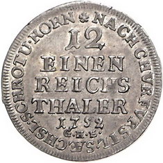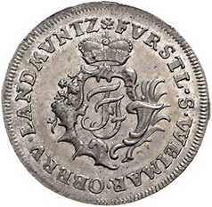 Los-Nummer: Auktion 51 - 1693 Altdeutsche Münzen und Medaillen Sachsen-Coburg-Saalfeld Franz Josias 1745-1764, 1/12 Taler 1752 GHE. Gekröntes Monogramm in Kartusche / Wert in fünf Zeilen. Grasser -, Slg. Merseburger -, Kozinowski/Otto/Ruß Anm. Seite 610. Äußerst selten. Fast Stempelglanz Schätzpreis: 300,- Zuschlag: 380,- |
