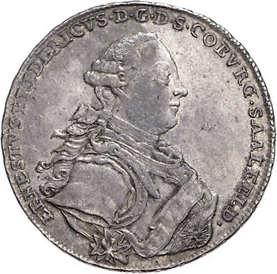 Los-Nummer: Auktion 51 - 1694 Altdeutsche Münzen und Medaillen Sachsen-Coburg-Saalfeld Ernst Friedrich 1764-1800, Taler 1764 ICE, Saalfeld. Grasser 527, Schnee 607, Davenport 2751, Kozinowski/Otto/Ruß 885.4 b. (dieses Exemplar). Kl. Schrötlingsfehler, sehr schön Schätzpreis: 175,- Zuschlag: unverkauft |