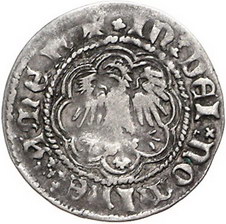 Los-Nummer: Auktion 51 - 1842 Altdeutsche Münzen und Medaillen Überlingen, Stadt Schilling 'Moneta Parva.' o.J. (ab 1436) Nach links schreitender gekrönter Löwe in Achtpass / Einköpfiger Adler nach links blickend. Nau 11. Prägeschwäche, sehr schön Schätzpreis: 800,- Zuschlag: unverkauft |