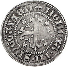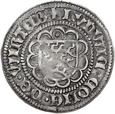 Los-Nummer: Auktion 51 - 1881 Altdeutsche Münzen und Medaillen Württemberg Ludwig I. 1419-1450, Schilling o.J. nach dem Riedlinger Vertrag. Hirschstangenschild in Zwölfpass / Blumenkreuz. Klein/Raff 12.1. Sehr schön Schätzpreis: 600,- Zuschlag: 500,- |