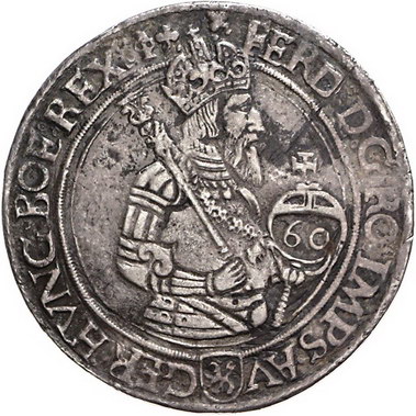 Los-Nummer: Auktion 51 - 1974 Haus Habsburg Haus Habsburg Ferdinand I. 1521-1564, Guldentaler zu 60 Kreuzern 1564, Joachimsthal. Davenport 34, Voglhuber 58, Dietiker 43. Fundexemplar. Leicht korrodiert, sehr schön Schätzpreis: 250,- Zuschlag: 260,- |