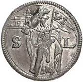 Los-Nummer: Auktion 51 - 2248 Haus Habsburg Klosterneuburg, Stift Balthasar, Propst 1584-1596, Spendenpfennig (Leopoldspfennig). St. Leopold mit Fahne und Kirchenmodell zwischen S - L / Mitriertes Wappen zwischen .B.P. - .C. Slg. Peus -. Stempelfehler, sehr schön Schätzpreis: 75,- Zuschlag: unverkauft |