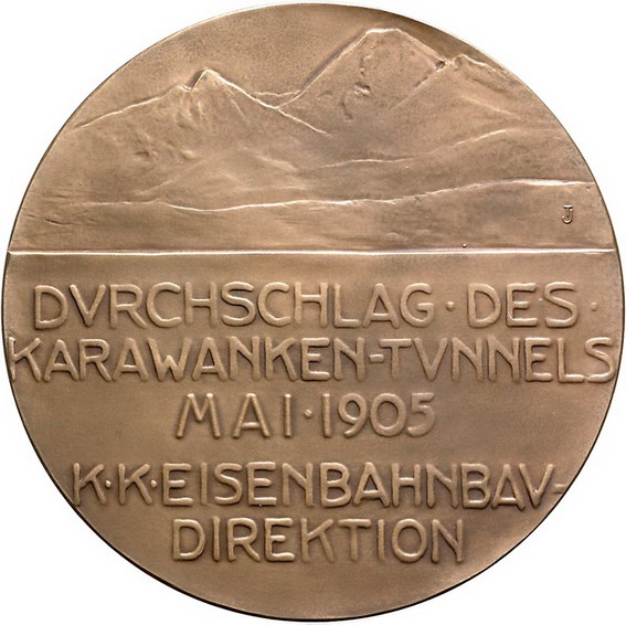 Los-Nummer: Auktion 51 - 2275 Medaillen Ausbeute Österreich Bronzemedaille 1905, von Tautenhayn. Auf den Durchschlag des Karawanken-Tunnels. Zwei Bergleute reichen sich am Stollenmundloch die Hand, im Abschnitt ROSENBACHTHAL - BIRNBAUM / Alpenlandschaft über fünf Zeilen Schrift. Müseler 45.33. 70 mm. Mattiert, vorzüglich + Schätzpreis: 100,- Zuschlag: unverkauft |