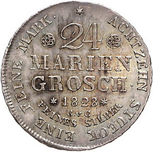 Los-Nummer: Auktion 51 - 654 Altdeutsche Münzen und Medaillen Braunschweig-Wolfenbüttel Karl 1815-1830, 24 Mariengroschen 1828 CvC. Jaeger 238 b, AKS 55, Kahnt 148. Schöne Patina. Winz. Schrötlingsfehler, vorzüglich + Schätzpreis: 90,- Zuschlag: 72,- |