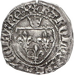 Los-Nummer: Auktion 51 - 2981 Ausländische Münzen und Medaillen Frankreich Karl VII. 1422-1461, Blanc à la couronnelle, Poitiers. (21.01. 1423) Kleine Krone über Schild mit drei Lilien / Kreuz, in den Winkeln drei Lilien und Krone. Duplessy 462. Exemplar aus dem Fund von Chevenière. Sehr schön - vorzüglich Schätzpreis: 600,- Zuschlag: unverkauft |