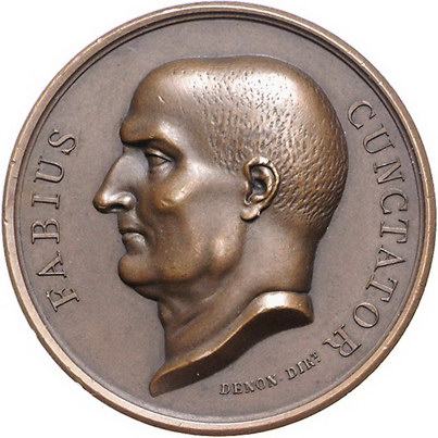 Los-Nummer: Auktion 51 - 3019 Ausländische Münzen und Medaillen Frankreich Medaillen Napoleons I. Bronzemedaille o.J. (1807), von Andrieu. Auf seine abwartende Haltung in Ostróda/Polen. Belorbeerter Kopf nach rechts / Kopf des römischen Feldherrn und Staatsmannes Quintus Fabius Maximus gen. Cunctator (der Zauderer, +203 v. Chr.) nach links. Slg. Julius 1735. Neuprägung. 40 mm. Vorzüglich Schätzpreis: 50,- Zuschlag: unverkauft |