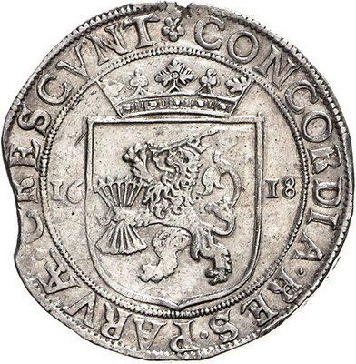 Los-Nummer: Auktion 51 - 3519 Ausländische Münzen und Medaillen Niederlande-Overijssel Niederländischer Reichstaler 1618. Delmonte 948, Davenport 4832. Zainende, Schrötlingsfehler, sehr schön - vorzüglich Schätzpreis: 125,- Zuschlag: 140,- |