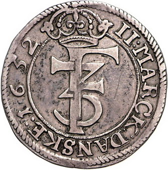 Los-Nummer: Auktion 51 - 3559 Ausländische Münzen und Medaillen Norwegen Friedrich III. 1648-1670, 2 Mark 1652, Christiana. Hede 67 B, ABH 147. Sehr schön Schätzpreis: 350,- Zuschlag: 380,- |